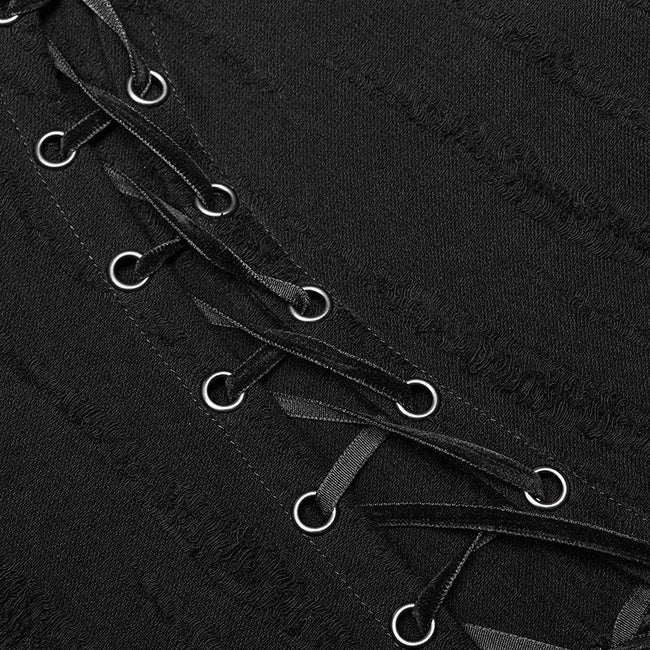 2. Slip dress style, the hem is spliced with a variety of fabrics and distributed in a staggered manner, presenting a rich visual effect. The irregular "pointed shape" perfectly interprets the Gothic aesthetic feeling.