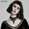 - Rebellious girl element metal rivet, metal zipper tooth welt, flow dynamic chain, unique buckle in the front + suspended metal cross decoration.