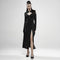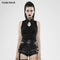 - Sleeveless T-shirt with sharp hem. Knitting material bar crisscross extension to the hem, hanging down a variety of irregular metal pendant decoration