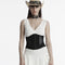 3. Metal eyelets and studded leather loops create an avant-garde punk feel.