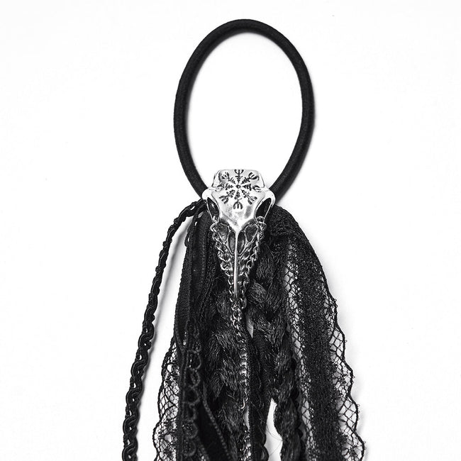 2. The personalized raven skull creates a hardcore vibe, while lace tassels add a fresh twist.