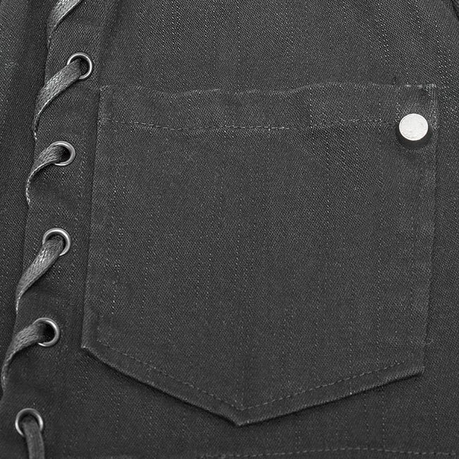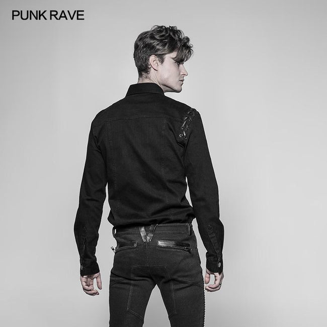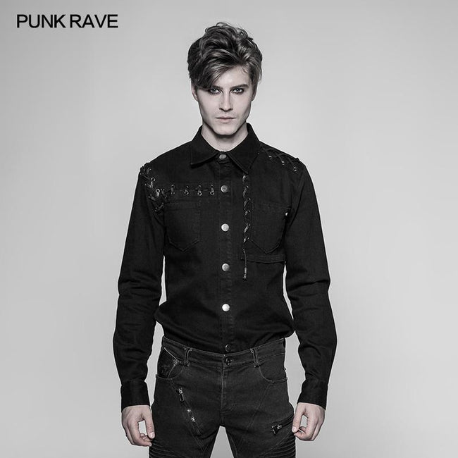 Men's Punk Tie Rope Personality Shirt With Double Pocket